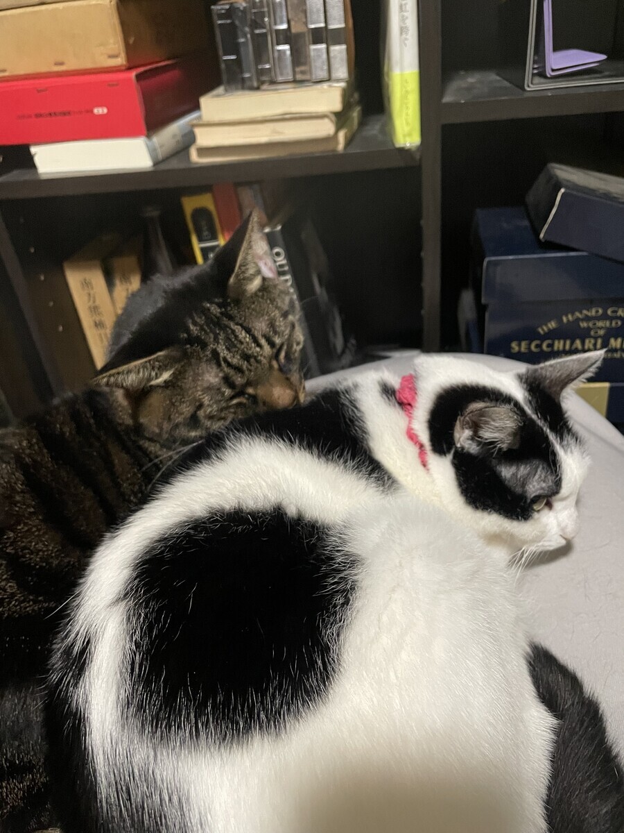 りんちゃんの面倒をよく見てくれていて、よく一緒に寝ています。